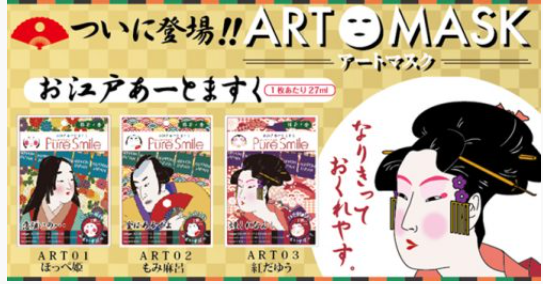 こちらはフェイスパックを「アートマスク」と称して、様々なデザインで商品展開がなされています。