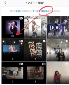 アカウントのインサイトを開き、「コンテンツ」の「フィード投稿」という項目で「保存済み」を選択すると、保存数が多い順にフィード投稿が表示されるようになっています。