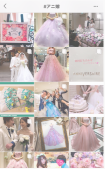 アニヴェルセル株式会社のオリジナルハッシュタグ「#アニ嫁」。アニ嫁とはアニヴェルセルという有名なゲストハウスで結婚式を挙げるプレ花嫁と、アニヴェルセルで結婚式を挙げた卒花嫁を表す言葉の総称です。