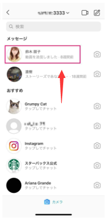 ほかのユーザーがダイレクトメッセージを見ると、鈴木朋子さんが「オンライン中」として表示されています。これを隠します