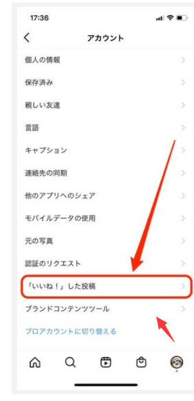 続いて「いいね!」した投稿をタップすると、これまでにいいねした投稿が一覧で見られます。