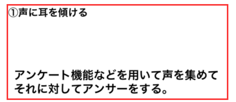 「声に耳を傾ける」という点では、アンケート機能などを用いて声を集め、それに対したアンサーをするが大事になります。