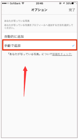 また、タグ付けされた写真がプロフィールに表示されたくない人は、「タグオプション」で「手動で追加」を選択しておきましょう。こうすることで、タグ付された写真をプロフィールに表示するかどうかを任意で決められます。